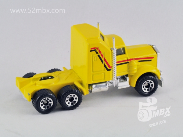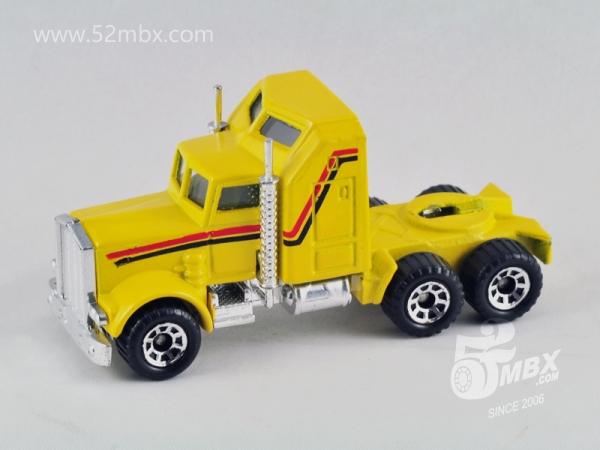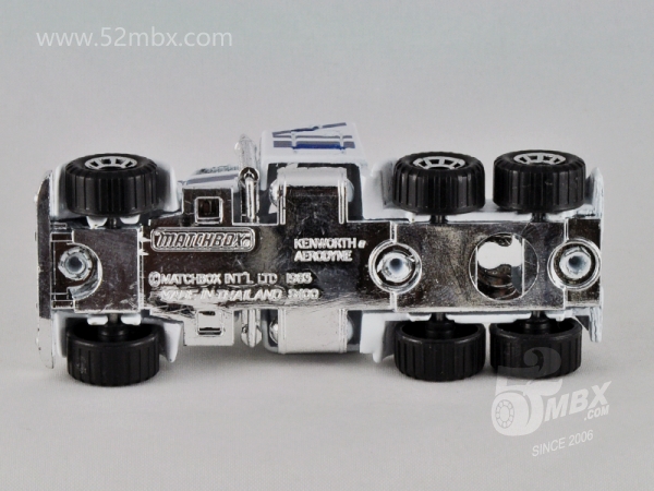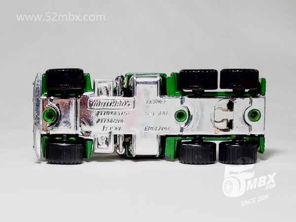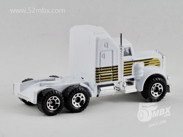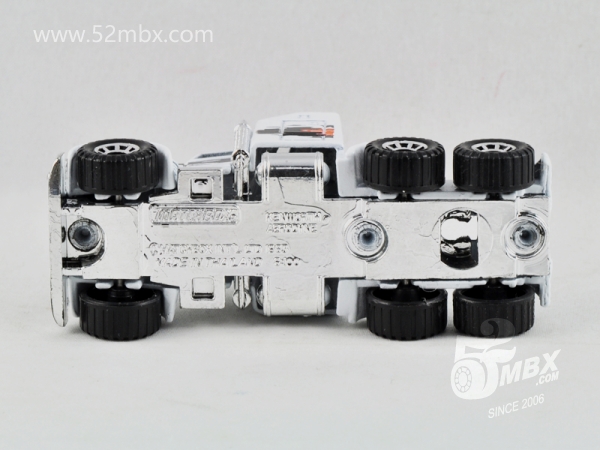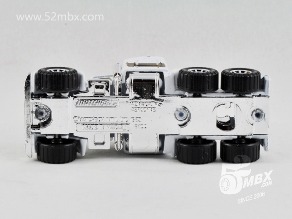 版权年代/Year on base: 1981 / 1983 Mack #:41-D 比例/Scale: 1:100 底盘标注/Marked on base Matchbox标志样式/Logo style: ![]() 制造商信息/Company name: Lesney 其它版本/Other versions: Matchbox Int'l Ltd. 其它版本/Other versions: Mattel, Inc. 产地/Origin(s): | 英格兰 (England) | 澳门环球 (Macau) | 珠海永泰 (China - Yongtai) | 南海官窑 (China - Guanyao) | 泰国 (Thailand) | 该车是莱斯尼的遗作之一,也是火柴盒1-75系列中的一款“常胜将军”,最早于1982年在英格兰制作,塑料镀铬底盘,无避震,无内饰。早期底盘标注Lesney England,版权年代为1981。1983年起改制造商为Matchbox Int`l Ltd.(未见有Matchbox Toys Co., Ltd.的版本),1985年下半年开始出现版权年代为1983的品种,但标有1981的产品同时也在市场销售。1986年起该车在澳门生产。1988年以前,该车经常作为CY4、CY6、CY9的车头销售,1989年随着007第16部《杀人执照》的上演,环球推出了“007詹姆斯·邦德”系列套装,该模型真车W900A型因作为Kenworth公司赞助的电影拍摄用车,所以顺理成章地被选为CY105的车头,同年在环球推出的Days of Thunders(DT)系列NASCAR赛车组合中,该车作为White Rose配套拖车系列以CY104的形式出现,该系列一直延续到1991年,时值该车在泰国生产之际。此后,该车又被列入Indy赛车系列的生产计划。1992年该车被选为CY36的车头。1996年,该车开始在南海官窑制造,即目前大家熟悉的那一批M&M巧克力涂装等系列的CY9货柜车。1998年美泰公司对该车再次复刻,修改制造商信息为Mattel, Inc.但保留版权年代为1983,该款式以深蓝色车身的Kellogg`s“奇乐氏”食品涂装的CY9推出,之后未见有新品出现。 与该车型相似的其他品种可参考MB066、MB084,以及美泰复刻精品系列之MB310。 1-75系列中相关Convoy拖头还可以参考:MB045、MB106、MB147、MB183、MB202、MB214、MB432。 最后更新/Updated: 2020-03-06 | ||||||||||||||||||||||||||||