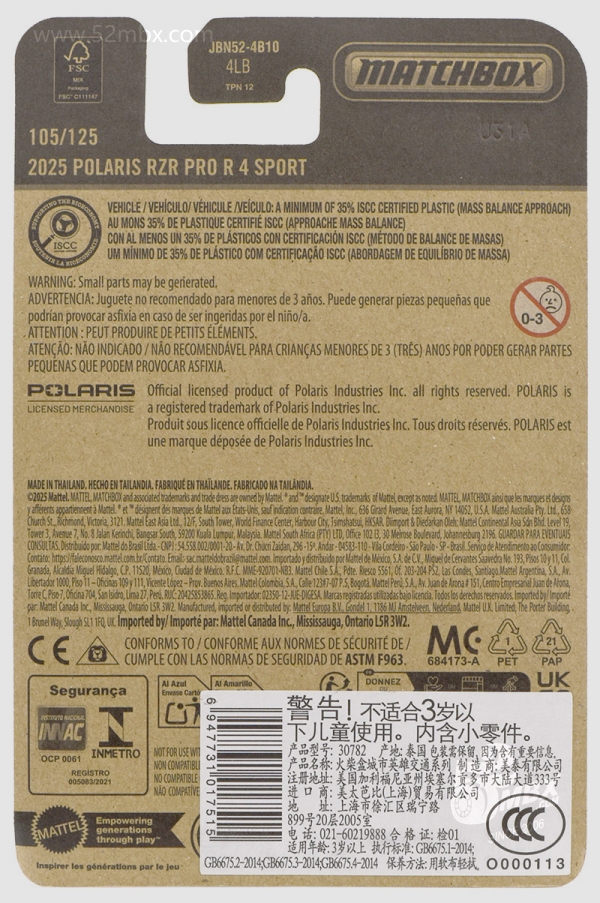 产地/Origin(s): 泰国 (Thailand) 版权年代/Year on base: 2025 2025年发行的年度105号,首版涂装。 图片提供者/Picture by: chenly75,上传时间/Updated: 2025-10-11