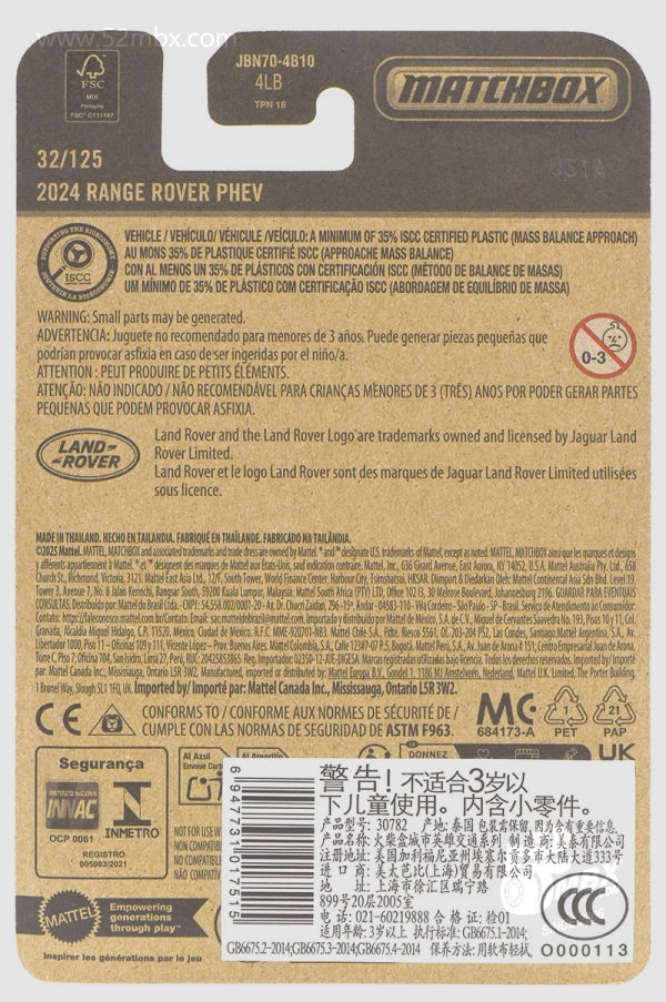 制造商信息/Company name: Mattel 1186 MJ, 1, NL MB标志样式/Logo style: