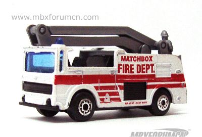 涂装序号/Variation #: 021 | ![]() 制造商信息/Company name: Matchbox Int'l Ltd. MB标志样式/Logo style: ![]() 产地/Origin(s): 上海环球 (China - SUTC) 版权年代/Year on base: 1981 1997年2月发行的总第21种涂装(白底红条MBX Fire Dept.) 图片提供者/Picture by: pocket,上传时间/Updated: 2012-04-20