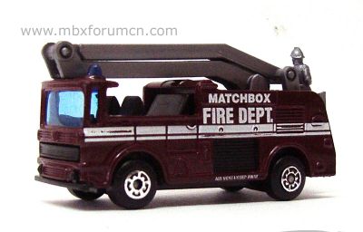 涂装序号/Variation #: 022 | ![]() 制造商信息/Company name: Matchbox Int'l Ltd. MB标志样式/Logo style: ![]() 产地/Origin(s): 上海环球 (China - SUTC) 版权年代/Year on base: 1981 1997年3月发行的总第22种涂装(紫红色底,白条MBX Fire Dept.) 图片提供者/Picture by: pocket,上传时间/Updated: 2012-04-20