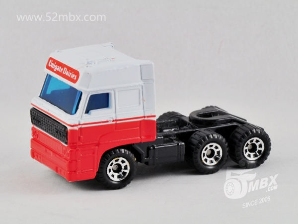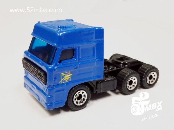 涂装序号/Variation #: 001![]() 制造商信息/Company name: Matchbox Int'l Ltd. MB标志样式/Logo style: ![]() 产地/Origin(s): 澳门环球 (Macau) 版权年代/Year on base: 1987 1987年8月仅在澳洲发行的CY-9(其它地区:CY-102 SA)的牵引车,首版涂装。 图片提供者/Picture by: chenly75,上传时间/Updated: 2017-07-01