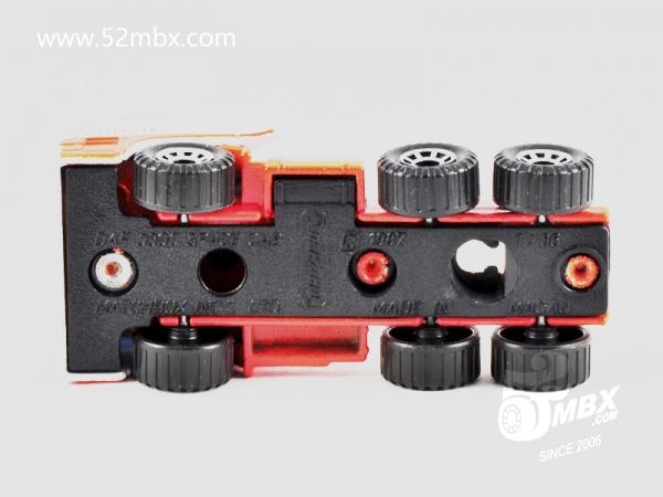 涂装序号/Variation #: 052 | ![]() 制造商信息/Company name: Mattel, Inc. MB标志样式/Logo style: ![]() 产地/Origin(s): 南海官窑 (China - Guanyao) 版权年代/Year on base: 1987 1999年4月发行的总第52种涂装,首次以单独包装形式发行。 图片提供者/Picture by: app,上传时间/Updated: 2014-03-04