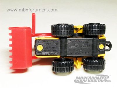 版权年代/Year on base: 1976 比例/Scale: 1:82 底盘未标注/Not marked on base SuperFast标志:有/Yes 底盘编号/Number on base: 29 Matchbox标志样式/Logo style: ![]() 制造商信息/Company name: Matchbox Toys Ltd. 产地/Origin(s): 上海环球 (China - SUTC) | 该车是美泰公司在莱斯尼遗留的MB029模具基础上,在铲斗左侧手臂上增加水平推杆的小改款产品。最早于1997年在上海环球生产。首版仅在Action System系列之#6 Gold Mining Pack(金矿采掘)套装中出现,该系列在包装盒上开有凹槽,玩家可在不拆开包装的情况下,仅通过凹槽移动上述推杆使铲斗及手臂上举或下放。1998年该车与MB209再次出现在当年的Adventure Pack之Mining(采矿)套装中,此后再无其他新版本发行。 最后更新/Updated: 2021-12-02 | |||