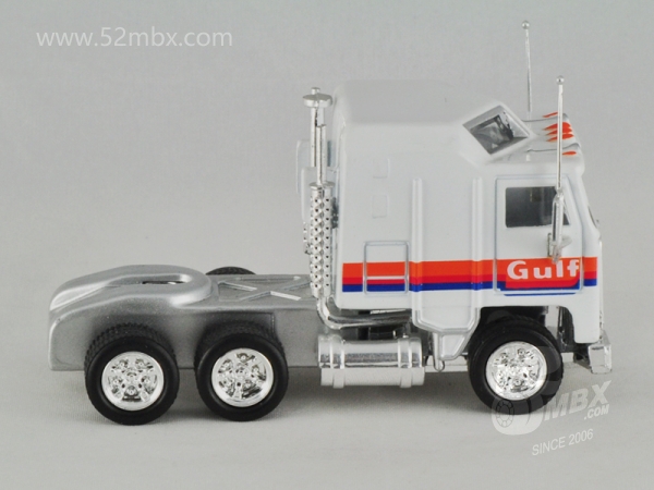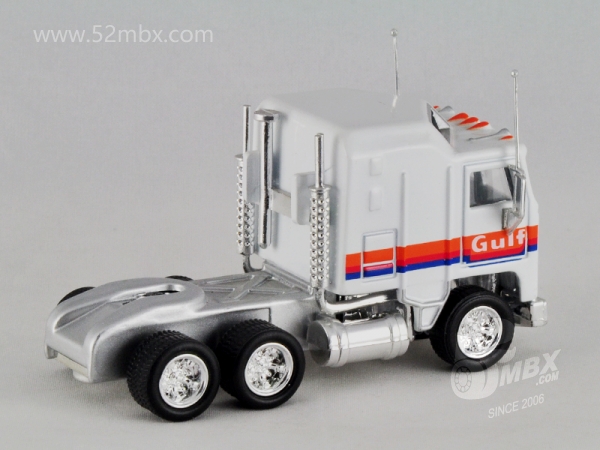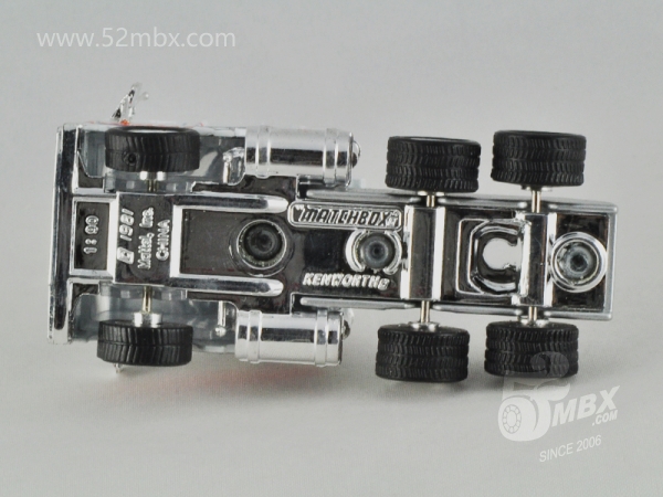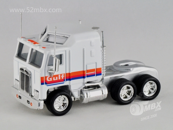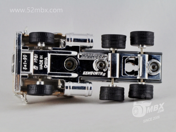 版权年代/Year on base: 1981 Mack #:45-C 比例/Scale: 1:90 底盘标注/Marked on base Matchbox标志样式/Logo style: ![]() 制造商信息/Company name: 未标注/Not marked on base 其它版本/Other versions: Mattel, Inc. 产地/Origin(s): 南海官窑 (China - Guanyao) | 该车是美泰早期产品之一,最早于1997年在南海官窑生产,目前已知仅有中国版。该车是在莱斯尼与环球交替时期遗留的MB45基础上增加倒车镜及天线,细化涂装并配以橡胶车胎的精品小改款产品。首版出现在当年发行的Premiere Convoy精品货柜车系列中,编号CY110五月花(Mayflower)涂装。1998年该车再次出现在美泰新发行的Collectibles Convoy(CCY)精品拖车系列中,并作为CCY03的指定拖头发行了多个版本。值得一提的是,该车的前身MB45自环球时代在澳门生产以来长期未像莱斯尼时代那样标注制造商信息,仅有火柴盒商标。这一情况也延续到该车早期生产的版本。直到1998年,美泰公司将该车运用到当年新发行的Matchbox Collectibles精品系列之DYM36838海湾石油(Gulf)涂装油罐车上,该车才在底盘上标注了制造商信息。然而此后不久该车随着整个Matchbox Collectibles系列退出了市场。 最后更新/Updated: 2020-03-06 | ||||||||||