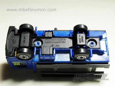 版权年代/Year on base: 1981 比例/Scale: 1:90 底盘标注/Marked on base Matchbox标志样式/Logo style: ![]() 制造商信息/Company name: 未标注/Not marked on base 产地/Origin(s): 上海环球 (China - SUTC) | 车牌号码/License plate number: KCF 17 W (仅有前号牌) 该车是美泰早期产品之一,最早于1997年在上海环球生产。该车是在MB148的基础上修改车身零件的小改款产品。首版与MB314首版一同出现在当年发行的Action System(AS)之Construction(建筑主题套装)中。其中该车的车栏为黑色,内装四片建筑用预制板。2000年该车与MB236的第二版一同出现在当年发行的Adventure Pack(AP)之Farming(农场主题套装)中。其中该车的车栏为棕色,内装两个草捆。此后未见有其他新版本发行。 与该车有关的其它车型可参考:MB26、MB35、MB139、MB148、MB389和MB395(未生产)。 最后更新/Updated: 2021-12-02 | |||