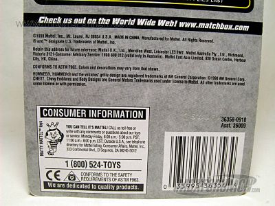 ![]() 左侧 图片提供者/Picture by: chenly75,上传时间/Updated: 2012-04-20 ![]() 包装盒内顶部视角:无附加天线和机枪(区别于MB984)。 图片提供者/Picture by: chenly75,上传时间/Updated: 2012-04-20 ![]() 底盘前端,仍能看到底盘中间的隐藏式小轮,且底盘仍然为塑料件。 图片提供者/Picture by: chenly75,上传时间/Updated: 2012-04-20 ![]() 尾部细节,其中的战车编号同MB984,但位置略有不同。 图片提供者/Picture by: chenly75,上传时间/Updated: 2012-04-20 ![]() Premiere精品系列原包装(背卡较长) 图片提供者/Picture by: chenly75,上传时间/Updated: 2012-04-20 ![]() 原包装背面 图片提供者/Picture by: chenly75,上传时间/Updated: 2012-04-20 ![]() 包装上的产地,年代及版权信息。 图片提供者/Picture by: chenly75,上传时间/Updated: 2012-04-20 |