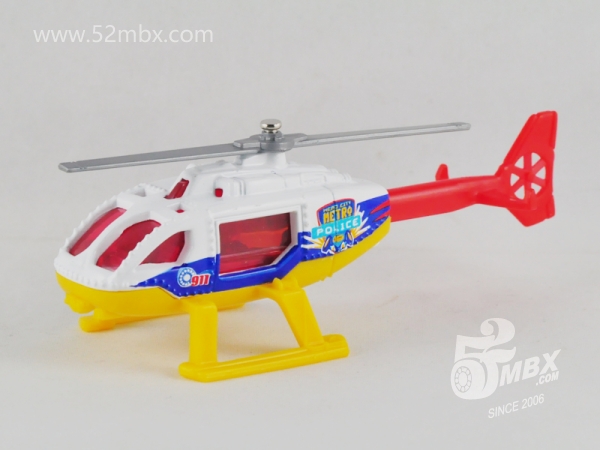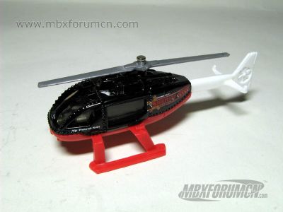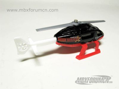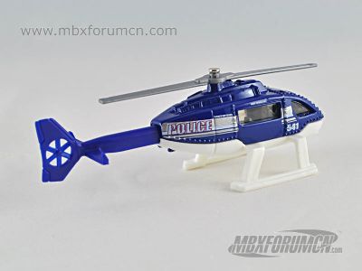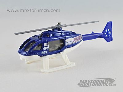 涂装序号/Variation #: 018 | ![]() 制造商信息/Company name: Mattel, Inc. MB标志样式/Logo style: ![]() 产地/Origin(s): 泰国 (Thailand) 版权年代/Year on base: 2001 2010年12月发行的五件套(5-Pack,SKU:R0607)组件之一,总第18种涂装:Police 541。顶部螺旋桨叶不可折叠。 图片提供者/Picture by: chenly75,上传时间/Updated: 2012-04-20