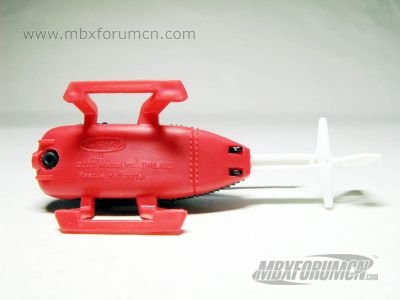版权年代/Year on base: 2001 Mack #:63-O 比例/Scale: 无/None Matchbox标志样式/Logo style: ![]() 制造商信息/Company name: Mattel, Inc. 产地/Origin(s): 南海官窑 (China - Guanyao) | 泰国 (Thailand) | 该模型由美泰公司原创,最早于2002年在南海官窑生产。合金机身,塑料底盘及起落架,可伸缩尾翼,镂空的涵道式尾桨,顶部螺旋桨叶不可折叠,有内饰。2004年以后经常出没于五件套(5-Pack)中。2005年起开始在泰国生产。2018年美泰公司修改了模具,并赋于新编号MB984。与该模型有关的其他产品还可参考:2003年汉堡王促销品,以及2004年汉堡王促销品。 最后更新/Updated: 2020-04-03 | |||||||||||||