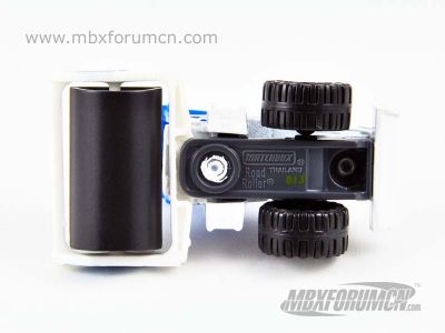 版权年代/Year on base: 2009 Mack #:37-O 比例/Scale: 无/None 底盘编号/Number on base: MB800 Matchbox标志样式/Logo style: ![]() 制造商信息/Company name: Mattel, Inc. 产地/Origin(s): 泰国 (Thailand) | 该车由美泰公司原创,最早于2010年底在泰国生产。塑料底盘无避震,前部为塑料可左右转向框架结构,内有塑料滚筒,后部则为装载机车轮。年代和制造商信息刻在前半部塑料框架底部边缘,火柴盒商标刻在后半部底盘下方,而编号MB800及亚洲象标志则刻在合金踏脚底部与车身一体为合金,顶棚整体为可取下塑料件,内饰与车身一体铸造。2015年美泰公司将该车前轮滚动整体改为与后半段底盘一体,从而使全部零件数量减少的四个,并赋予新编号MB940。 最后更新/Updated: 2020-03-18 | |||||||||||||