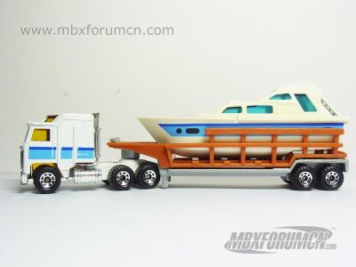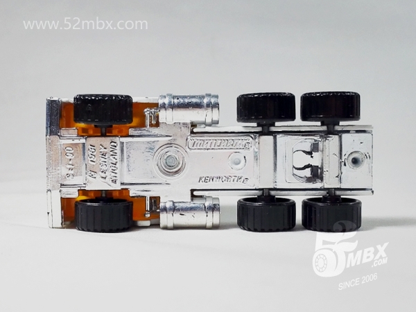 版权年代/Year on base: 1981 Mack #:45-C 比例/Scale: 1:90 底盘标注/Marked on base Matchbox标志样式/Logo style: ![]() 制造商信息/Company name: Lesney 其它版本/Other versions: Mattel, Inc. 产地/Origin(s): | 英格兰 (England) | 澳门环球 (Macau) | 珠海永泰 (China - Yongtai) | 南海官窑 (China - Guanyao) | 泰国 (Thailand) | 该车是火柴盒Convoy(CY)系列的一部分,源自莱斯尼晚期的拖车系列。最早于1982年在英格兰生产,1983年起开始在英格兰和澳门同时生产,产量较高。与之搭配的CY产品很多,包括CY1、CY2、CY3、CY8、CY11、CY12、CY14、CY20、CY38、CY105以及CY202、CY204、CY205套装等。1990年开始在泰国生产,1996年才开始在中国制造。1998年,美泰公司在NBA系列中修改了底盘铭文。2002年该车退出市场。 与此车型相同的其他品种可参见MB309 Premiere Collection精品,与之有渊源关系的Convoy品种还有CY10 Racing Car Transporter。 1-75系列中相关Convoy拖头还可以参考:MB103、MB106、MB147、MB183、MB202、MB214、MB432。 最后更新/Updated: 2020-03-06 | |||||||||||||||||||||||||||||||||||||||||||