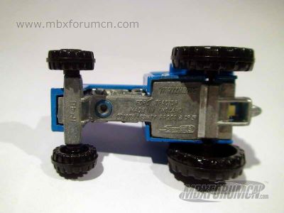 版权年代/Year on base: 1978 Mack #:46-C 比例/Scale: 1:67 底盘未标注/Not marked on base SuperFast标志:有/Yes 底盘编号/Number on base: 46 Matchbox标志样式/Logo style: ![]() 制造商信息/Company name: Lesney Products & Co., Ltd. 其它版本/Other versions: Matchbox Int'l Ltd. 产地/Origin(s): | 英格兰 (England) | 巴西 (Brazil) | 澳门环球 (Macau) | 泰国 (Thailand) | 该车是莱斯尼的遗作之一,最早在英格兰生产,1982年被环球官方定名为MB46。1981年以前,合金底盘和前散热器隔栅上都标有“FORD”商标,之后曾有过几个批次在底盘标有FORD字样,之后全部取消。早期带犁的形式被命名为TP11。1985年澳门环球开始制造此车,主要搭配形式是:带干草全挂车的TP108,和CY205配套以及MC7套装系列。1990年此车移到泰国生产,是环球晚期许多火柴盒MC套装中的常见品种,但由于上海环球及当时的永泰玩具都没有生产过此车,因此未见有中国版本出现。此车的相似车型还可以参考农场系列中的MB236。 最后更新/Updated: 2020-02-03 | ||||||||||
