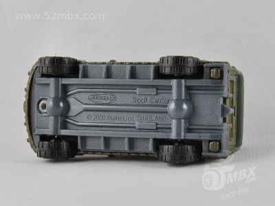 涂装序号/Variation #: 015 | ![]() 制造商信息/Company name: Mattel, Inc. MB标志样式/Logo style: ![]() 产地/Origin(s): 泰国 (Thailand) 版权年代/Year on base: 2000 2006年10月发行的军事两件套装(Hitch'n Haul)组件之一,总第15种涂装。 图片提供者/Picture by: chenly75,上传时间/Updated: 2012-10-30
