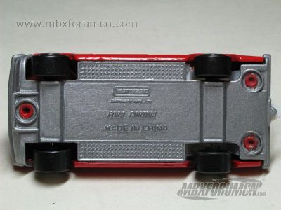 图片提供者/Picture by: chenly75,上传时间/Updated: 2014-02-11  珠海永泰版本底盘:无版权年代,无SuperFast标志,制造商信息修改为Matchbox Int`l Ltd.且字体极小,该底盘样式与此后的保加利亚版本一致。