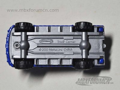 版权年代/Year on base: 2000 Mack #:52-I, 36-J 比例/Scale: 无/None 底盘编号/Number on base: MB514 Matchbox标志样式/Logo style: ![]() ![]() 制造商信息/Company name: Mattel, Inc. 其它版本/Other versions: Mattel 1186 MJ, 1, NL 产地/Origin(s): 南海官窑 (China - Guanyao) | 泰国 (Thailand) | 东莞长安 (China - LPF) | 该车是美泰公司在MB514基础上取消塑料车篷的小改款产品,最早于2003年在南海官窑生产。塑料底盘无避震,有尾钩,驾驶室有内饰。该车自首发以后,从未单独发售。2003年和2006年曾在五件套中出现以外,其他版本基本只在场景套装或十件套中才能找到。2008年以后未见有其他官方发行的新版本。2011年,该车有一批产品在东莞长安生产,为应对欧盟最新产品责任法,美泰公司在这批产品底盘上标注了美泰荷兰分公司地址:1186 MJ, 1, NL字样,同时添加了原形MB514编号。与该车有关的其他产品还可参考MB917。 最后更新/Updated: 2020-02-25 | ||||||||||