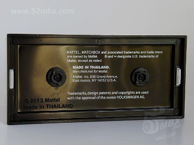 涂装序号/Variation #: 008 | ![]() 制造商信息/Company name: Mattel 1186 MJ, 1, NL MB标志样式/Logo style: ![]() 产地/Origin(s): 泰国 (Thailand) 版权年代/Year on base: 2012 2023年发行的大众系列第1号,总第8种涂装。该版本修改了火柴盒商标样式。 图片提供者/Picture by: chenly75,上传时间/Updated: 2023-08-30