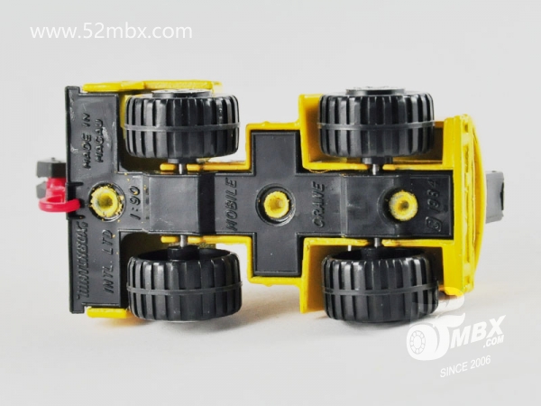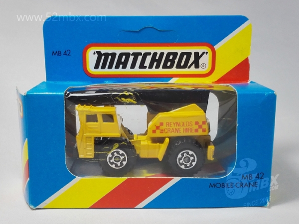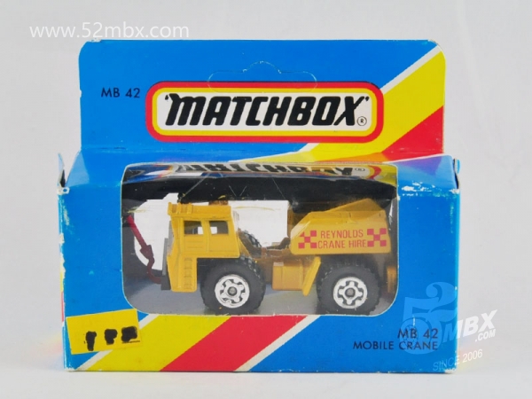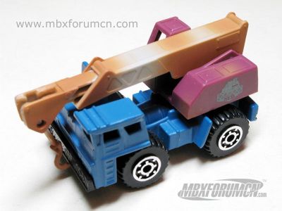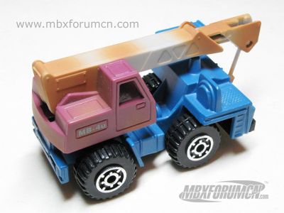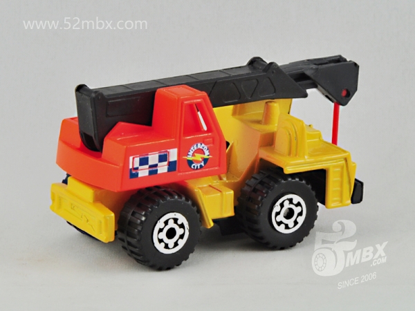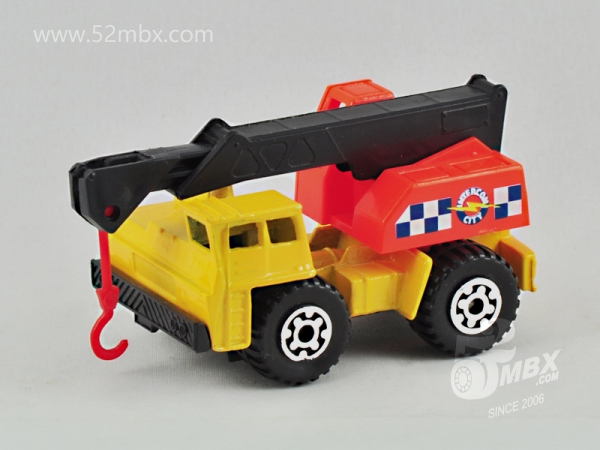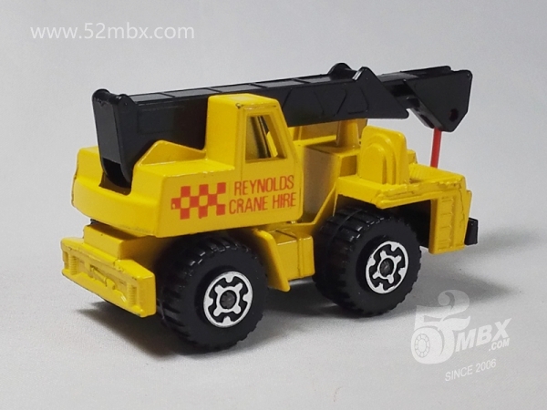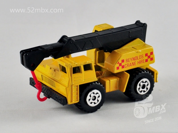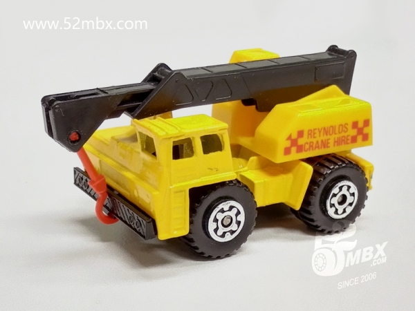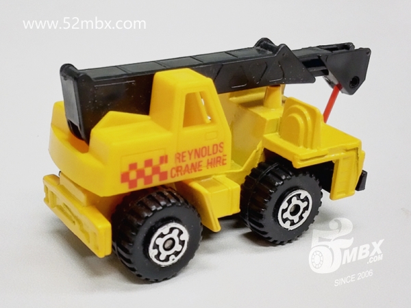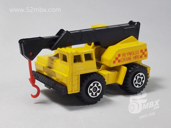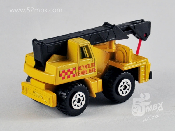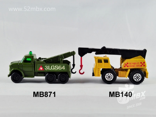 该车是环球中期产品之一,最早于1984年在英格兰生产,在MB058的基础上修改部件而成,早期涂装为黄色车身红色Reynolds Crane Hire涂装,塑料底盘无避震、金属吊车驾驶室、两节塑料伸缩吊臂、红色吊钩。该车比例存在争议,由于底盘及车头驾驶室都来自大型矿用翻斗车MB058,其比例大致在1:140左右,而该车底盘标注为1:90,明显失真。考虑到该车吊车驾驶室与吊臂、吊钩部件均来自莱斯尼时代流传下来的MB049,因而该车比例可能源自MB049。1985年该车在澳门生产,1986年相同的涂装在上海环球生产。但之后重新回到澳门批量生产,此时MB140也成为MotorCity汽车城系列中MC-8的一员。1990年开始在泰国生产,吊车驾驶室改为塑料,当时还保留最早的英格兰黄色涂装,但很快消失。1993年和1995年,该车的Intercom City(IC)子系列曾在珠海永泰玩具生产,底盘修改版权年代为1991年,修改火柴盒商标样式为环球圆角长方形,增加条形码识别装置。1996年,该车恢复为普通版,并重新在上海环球生产,主要供应美国市场。1998年,美泰公司曾计划发行一个Matchbox Adventure Pack with Color Changing Action(火柴盒场景套装之变色)系列。其中将该车的起重机平台修改为软胶储水装置并配上软管,配合MB395一同作为House Transporter套装组件发行。该套装已开发到接近上市阶段,但随后被官方取消发行,因而最终没能上市。1999年以后未见有其他官方发行的新版本。