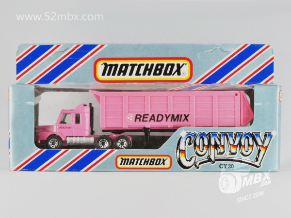 涂装序号/Variation #: 005 | ![]() 制造商信息/Company name: Matchbox Int'l Ltd. MB标志样式/Logo style: ![]() 产地/Origin(s): 澳门环球 (Macau) 版权年代/Year on base: 1985 1986年6月仅在澳洲发行的CY-20牵引车,总第5种涂装:Readymix。该涂装与1991年底发行的总第38种涂装极其相似,但区别是底盘经过了镀铬处理。 图片提供者/Picture by: chenly75,上传时间/Updated: 2016-10-20