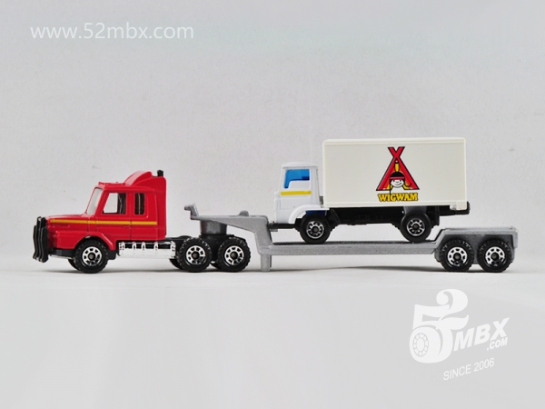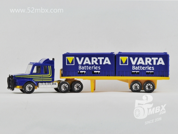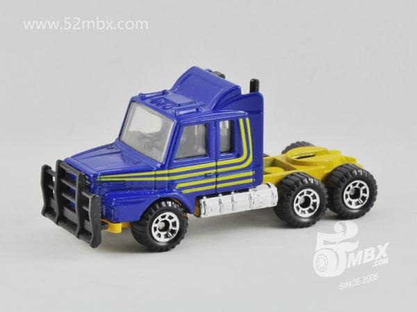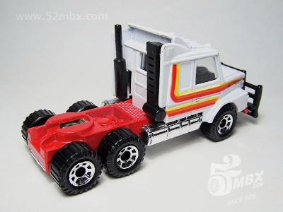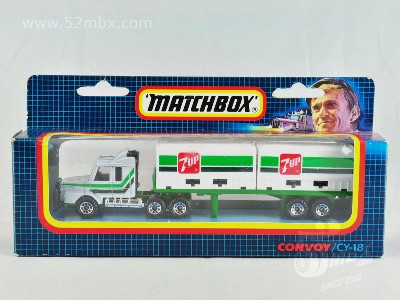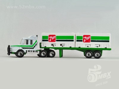 涂装序号/Variation #: 023 | ![]() 制造商信息/Company name: Matchbox Int'l Ltd. MB标志样式/Logo style: ![]() 产地/Origin(s): 澳门环球 (Macau) 版权年代/Year on base: 1985 1988年4月发行的CY18牵引车,7Up双集装箱拖车,总第23种涂装。 图片提供者/Picture by: chenly75,上传时间/Updated: 2015-09-08