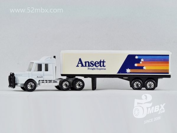 涂装序号/Variation #: 010 | ![]() 制造商信息/Company name: Matchbox Int'l Ltd. MB标志样式/Logo style: ![]() 产地/Origin(s): 澳门环球 (Macau) 版权年代/Year on base: 1985 1987年仅在澳洲市场发行的CY-4B的牵引车,总第10种涂装:Ansett 图片提供者/Picture by: chenly75,上传时间/Updated: 2017-05-10
