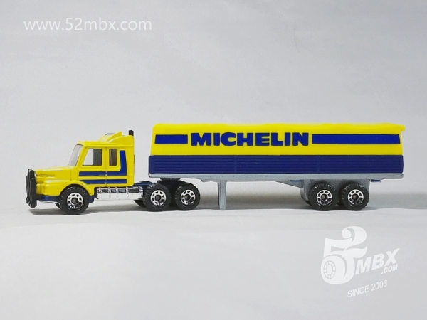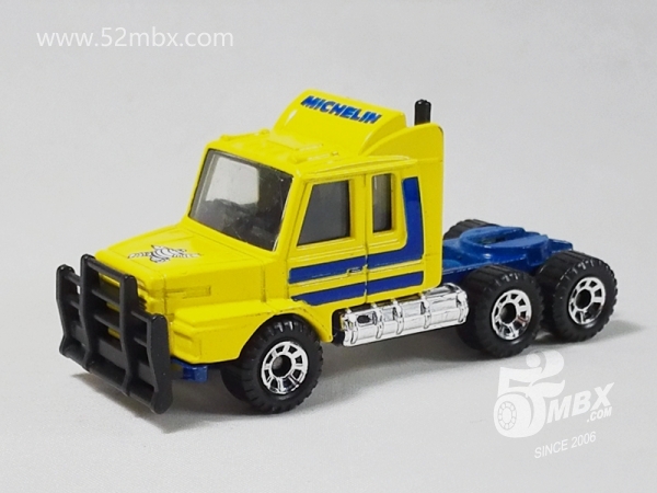 涂装序号/Variation #: 024 | ![]() 制造商信息/Company name: Matchbox Int'l Ltd. MB标志样式/Logo style: ![]() 产地/Origin(s): 澳门环球 (Macau) 版权年代/Year on base: 1985 1988年4月发行的CY-23牵引车,总第24种涂装:米其林 图片提供者/Picture by: chenly75,上传时间/Updated: 2017-07-07