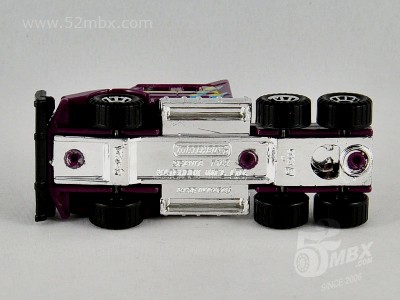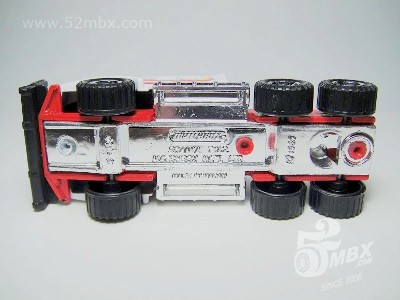 ![]() 尾部 图片提供者/Picture by: chenly75,上传时间/Updated: 2012-04-20 ![]() 底盘上制造商信息已变更为美泰公司,但火柴盒商标仍然维持环球圆角长方形样式。这个底盘样式一直保持到该产品退出市场。 图片提供者/Picture by: chenly75,上传时间/Updated: 2012-04-20 |