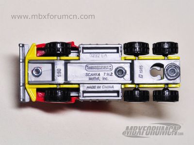 涂装序号/Variation #: 045 | ![]() 制造商信息/Company name: Mattel, Inc. MB标志样式/Logo style: ![]() 产地/Origin(s): 南海官窑 (China - Guanyao) 版权年代/Year on base: 1985 2000年1月发行的CY-21B的牵引车,总第45种涂装。 图片提供者/Picture by: chenly75,上传时间/Updated: 2017-06-22