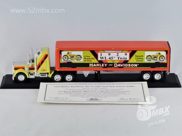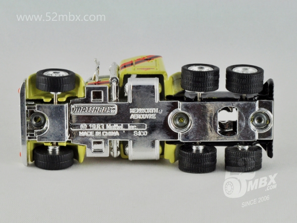 ![]() 图片提供者/Picture by: chenly75 最后更新/Updated: 2016-11-14 车头/Cab: MB310 Kenworth W900 Aerodyne (Premiere Edition) 挂车/Trailer: Box Truck (ULtra Collectibles) 版权年代/Year on base: 1983; 1996 比例/Scale: 1:100 底盘标注/Marked on base 制造商信息/Company name: Mattel, Inc. Matchbox标志样式/Logo style: ![]() 产地/Origin(s): 中国 (China) | | |||