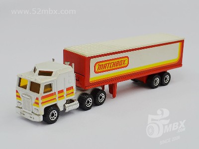 ![]() 图片提供者/Picture by: 尉迟911 最后更新/Updated: 2016-07-09 车头/Cab: MB45 Kenworth COE 挂车/Trailer: Box Truck 版权年代/Year on base: 1981 比例/Scale: 1:90 底盘标注/Marked on base 制造商信息/Company name: Lesney Matchbox标志样式/Logo style: ![]() 产地/Origin(s): | 英格兰 (England) | 澳门环球 (Macau) | | |||