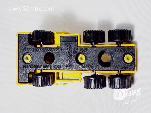 涂装序号/Variation #: 001![]() 制造商信息/Company name: Matchbox Int'l Ltd. MB标志样式/Logo style: ![]() 产地/Origin(s): 澳门环球 (Macau) 版权年代/Year on base: 1987 1987年在澳洲发行的唯一涂装,实际编号为CY-102/SA。 图片提供者/Picture by: chenly75,上传时间/Updated: 2017-07-01
