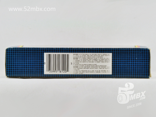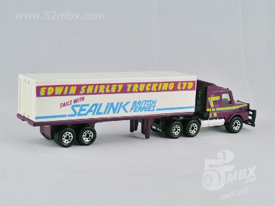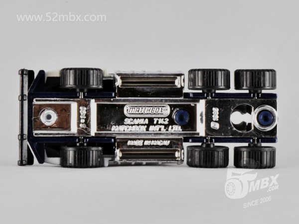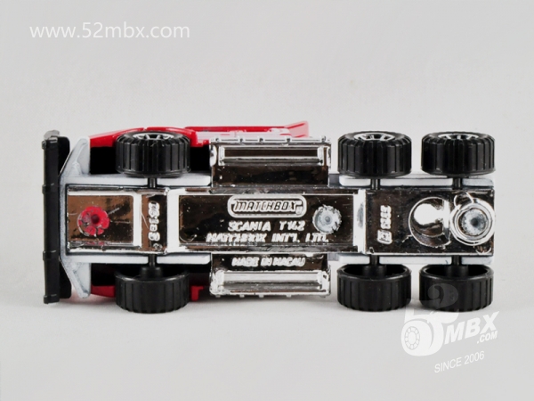 ![]() 图片提供者/Picture by: yuxuan1122 最后更新/Updated: 2016-07-02 车头/Cab: MB147 Scania T142 挂车/Trailer: Box Truck 版权年代/Year on base: 1985 比例/Scale: 1:90 底盘标注/Marked on base 制造商信息/Company name: Matchbox Int'l Ltd. Matchbox标志样式/Logo style: ![]() 产地/Origin(s): 澳门环球 (Macau) | | |||