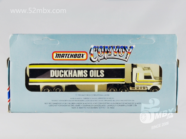涂装序号/Variation #: 004![]() 制造商信息/Company name: Matchbox Int'l Ltd. MB标志样式/Logo style: ![]() 产地/Origin(s): 澳门环球 (Macau) 版权年代/Year on base: 1985 1985年6月发行的总第4种涂装:Duckhams Oils。 图片提供者/Picture by: chenly75,上传时间/Updated: 2016-12-15