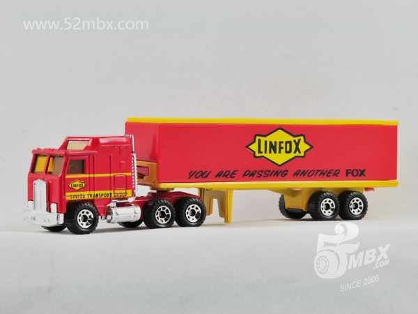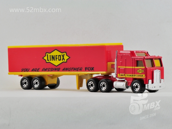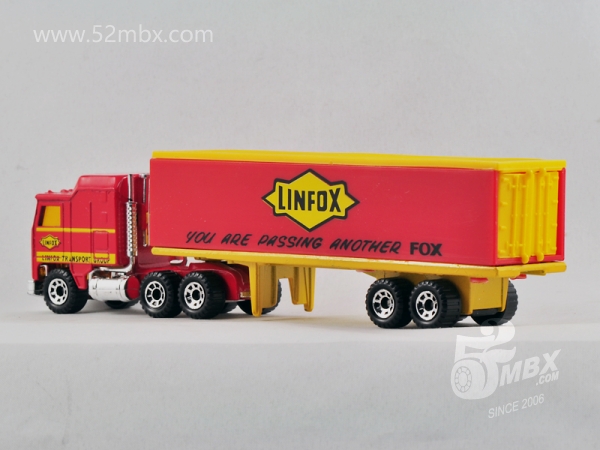 涂装序号/Variation #: 001![]() 制造商信息/Company name: 无/None MB标志样式/Logo style: ![]() 产地/Origin(s): 澳门环球 (Macau) 版权年代/Year on base: 1981 1987年仅限澳洲发行的唯一版本:Linfox 图片提供者/Picture by: chenly75,上传时间/Updated: 2017-05-10