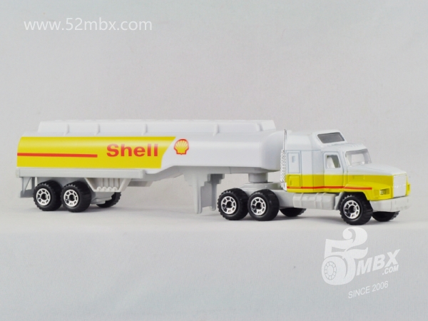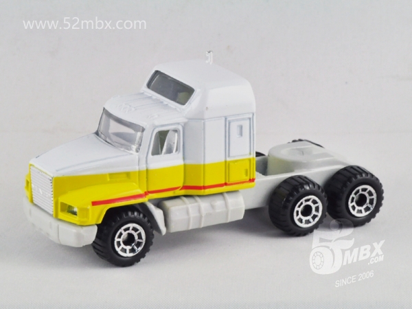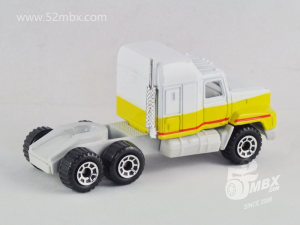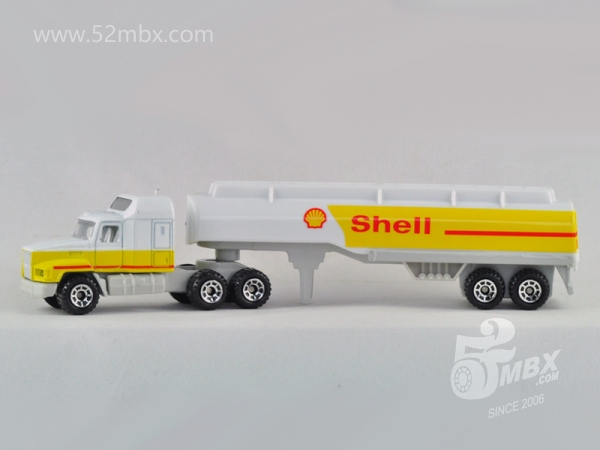 ![]() 图片提供者/Picture by: chenly75 最后更新/Updated: 2016-11-16 车头/Cab: MB202 Mack CH600 挂车/Trailer: Gas Tanker 版权年代/Year on base: 1990 比例/Scale: 1:97 底盘标注/Marked on base 制造商信息/Company name: Matchbox Int'l Ltd. 制造商信息(其它版本)/Company name (other versions): Mattel, Inc. Matchbox标志样式/Logo style: ![]() 产地/Origin(s): 中国 (China) | 泰国 (Thailand) | 该车最早于1992年在泰国生产,属于环球末期产品之一。此后该车头虽继续生产,但搭配油罐车的形式一致没有再次出现。2001年,美泰公司再次发行CY系列,该车在中国制造,作为最后一批复刻的环球时代产品上市,此后未见其他新版本发行。 | |||
