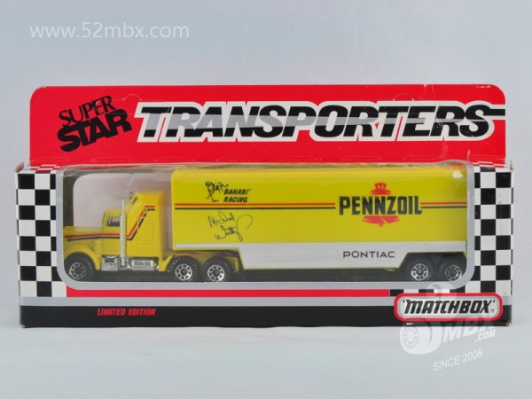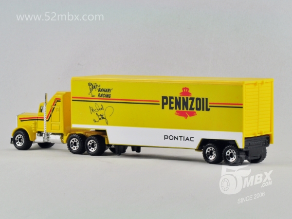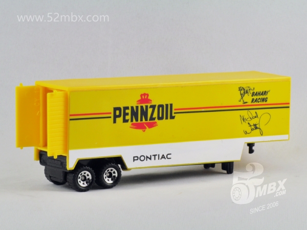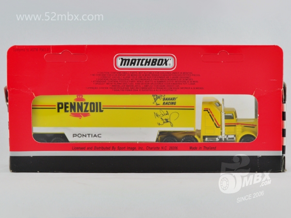 涂装序号/Variation #: 029![]() 制造商信息/Company name: Matchbox Int'l Ltd. MB标志样式/Logo style: ![]() 产地/Origin(s): 泰国 (Thailand) 版权年代/Year on base: 1983 1991年发行的总第29种涂装:Pennzoil润滑油及Pontiac赛车 图片提供者/Picture by: chenly75,上传时间/Updated: 2016-12-22