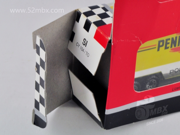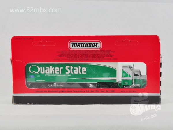 涂装序号/Variation #: 035![]() 制造商信息/Company name: Matchbox Int'l Ltd. MB标志样式/Logo style: ![]() 产地/Origin(s): 泰国 (Thailand) 版权年代/Year on base: 1983 1992年发行的总第35种涂装:Quaker State 26。 图片提供者/Picture by: chenly75,上传时间/Updated: 2019-03-11