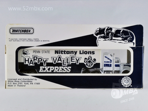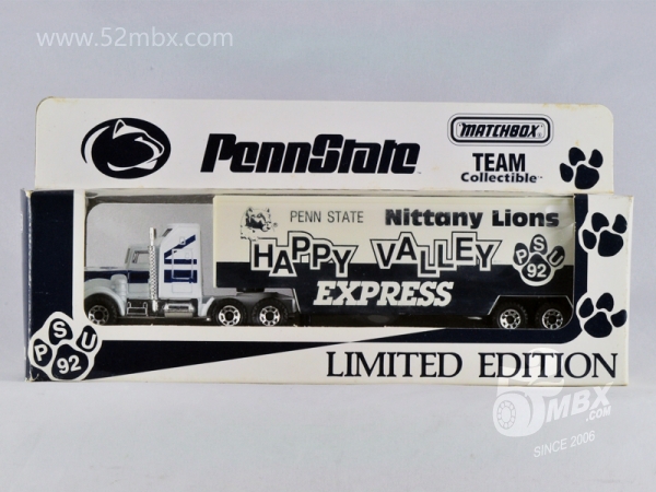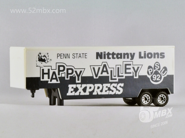 涂装序号/Variation #: 040![]() 制造商信息/Company name: Matchbox Int'l Ltd. MB标志样式/Logo style: ![]() 产地/Origin(s): 泰国 (Thailand) 版权年代/Year on base: 1983 1992年发行的总第40种涂装:Penn State Happy Valley(宾夕法尼亚州立大学“幸福谷”)。1930年代的美国经济大萧条时期,由于宾州大学的存在,该地区并未受到重大冲击,因而被称为“幸福谷”。后来Happy Valley亦被用来指代宾州州立大学(并非宾州大学)。 图片提供者/Picture by: chenly75,上传时间/Updated: 2016-12-22