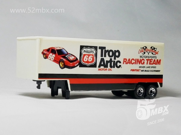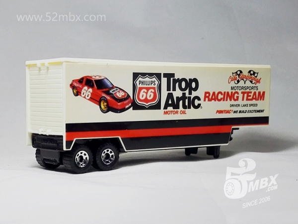 涂装序号/Variation #: 014![]() 制造商信息/Company name: Matchbox Int'l Ltd. MB标志样式/Logo style: ![]() 产地/Origin(s): 泰国 (Thailand) 版权年代/Year on base: 1983 1992年由White Rose分销的Trop Artic Racing Team限量版,总第14种涂装。 图片提供者/Picture by: chenly75,上传时间/Updated: 2017-09-29