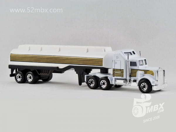 ![]() 图片提供者/Picture by: chenly75 最后更新/Updated: 2017-05-31 车头/Cab: MB103 Kenworth W900 Aerodyne 挂车/Trailer: Gas Tanker 版权年代/Year on base: 1983 比例/Scale: 1:100 底盘标注/Marked on base 制造商信息/Company name: Matchbox Int'l Ltd. Matchbox标志样式/Logo style: ![]() 产地/Origin(s): 澳门环球 (Macau) | 中国 (China) | 1989年至1991年间发行的《007 License to Kill》电影礼盒套装以及MC801壳牌石油套装组件。 | |||