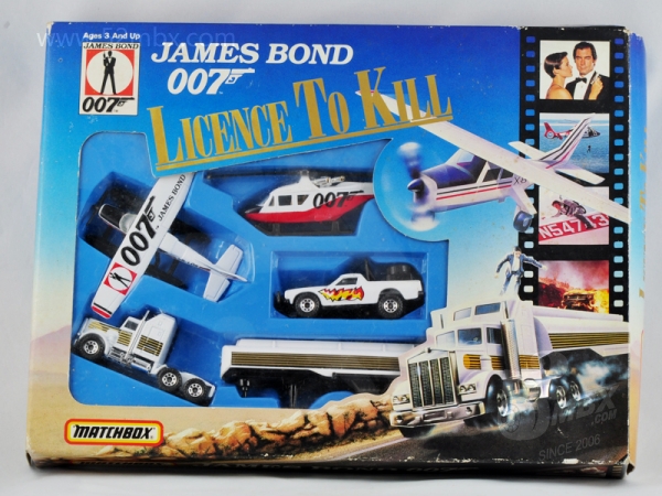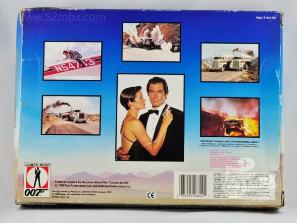 涂装序号/Variation #: 001![]() 制造商信息/Company name: Matchbox Int'l Ltd. MB标志样式/Logo style: ![]() 产地/Origin(s): 澳门环球 (Macau) 版权年代/Year on base: 1983 1989年9月仅在英国发行的《007 License to Kill》电影礼盒套装组件之一,首版涂装。 图片提供者/Picture by: chenly75,上传时间/Updated: 2017-05-31