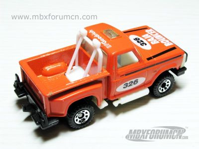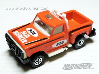 版权年代/Year on base: 1982 Mack #:53-D,55-J 比例/Scale: 1:76 底盘标注/Marked on base Matchbox标志样式/Logo style: ![]() 制造商信息/Company name: Matchbox Toys Ltd. 其它版本/Other versions: Trol B.A. S/A 产地/Origin(s): 巴西 (Brazil) | 澳门环球 (Macau) | 上海环球 (China - SUTC) | 泰国 (Thailand) | 车牌号码/License plate number: 44F150 该车是莱斯尼与环球交替时期的过渡产品之一,1991年以前都在澳门生产,其中1986年以前的澳门版使用八星小轮,底盘较低,之后的所有版本,除巴西生产的以外,均改为赛车轮并修改底盘高度为越野形态。1991年该车曾在巴西Trol工厂生产了一款延用1986年以前风格的小轮版,仅针对巴西和南美洲市场发行。同年该车开始在泰国生产,1996年开始在上海环球制造。该车有尾钩,其底盘刻画,无论八星小轮版本还是赛车轮版本都与MB168 Jeep Cherokee(吉普切诺基)底盘刻画相似。与该车相似的其他车型可参考太空(Tyco)时代制作的MB266。 最后更新/Updated: 2020-03-09 | ||||||||||||||||